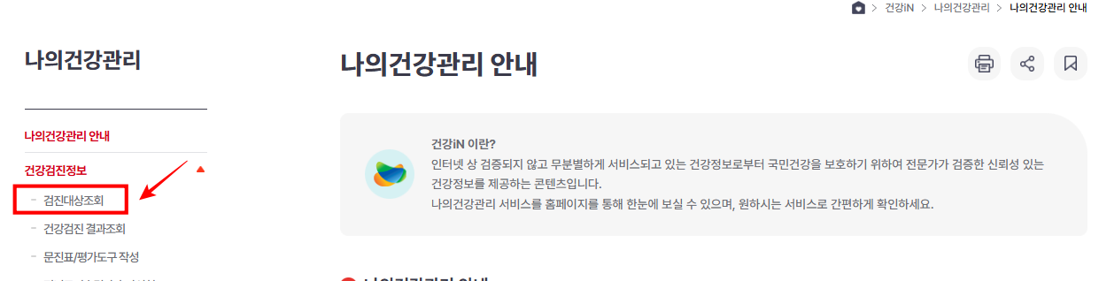 건강검진대상 확인방법 2