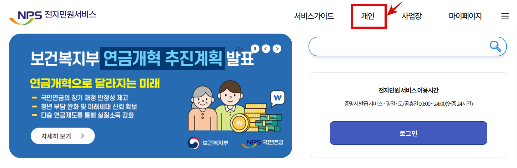 • 국민연금공단 시스템은 매월 마지막 토요일 00:00~04:00에 정기 점검을 진행합니다.