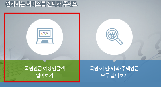 그럼 아래와 같은 팝업창이 나오는데, 여기서 국민연금 예상연금액 알아보기를 클릭합니다.​